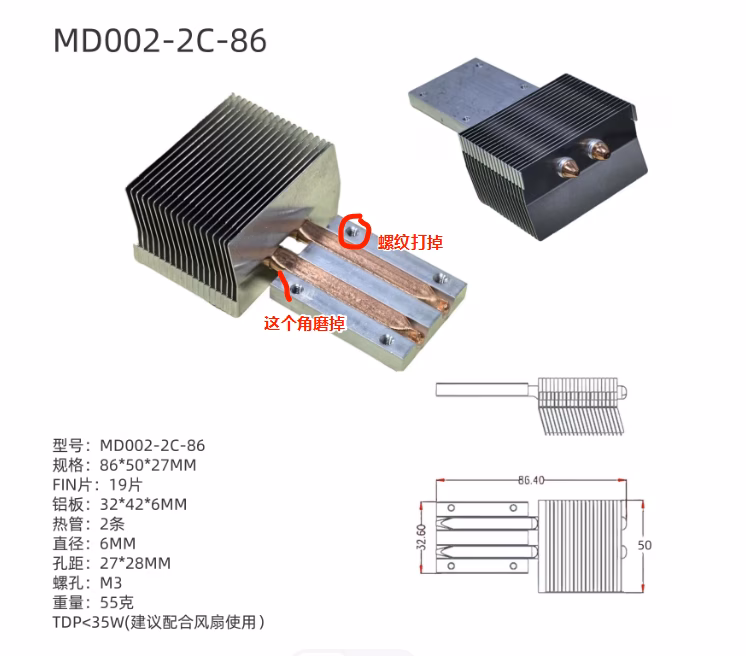 安装: 1、螺丝套上尼龙垫片从主板背面穿上。 2、芯片涂散热硅脂 3、放上投影仪散热器,右上角那个螺丝孔穿过螺丝 4、投影仪散热器上面再涂散热硅脂 5、放上原装散热器,右上角那个螺丝孔穿过螺丝,左下角那个螺丝孔穿过螺丝,把投影仪散热器压在了下面,整个固定住。 6、每个螺丝放上尼龙垫片 + 弹簧 + 尼龙垫片(一定要放,要不手拧螺母会与螺丝的接口有卡顿,拧起来费劲) + 手拧螺母 7、压会主板在桌面上,使得螺丝不易转动,手拧螺母,直到拧到散热片,拧不动为止。 完美收工。