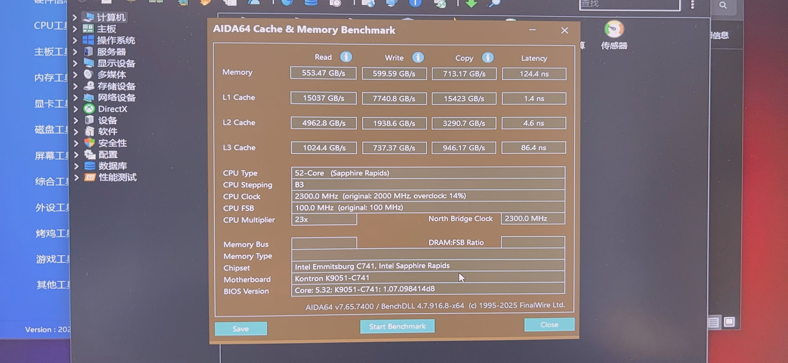 拆下装甲后的奠子裸照 既然到手了肯定得试试,于是装上Xeon Max 9470C试图点亮,问题来了,板子上似乎没写Front Panel的跳线定义怎么辉石呢但是电源通电开关一按下,主板便自动来电自起了,倒也是省去了寻找开机跳线的功夫螺丝刀刮了刮似乎并没有短接成功 出乎意料的是,板子点亮Max出奇的顺利,直接开机进了系统,Windows识别这颗Max似乎毫无阻碍——这与MS03不同,MS03似乎并不能在不修改BIOS设置的情况下稳定运行Windows——大概是NUMA识别的问题(?)